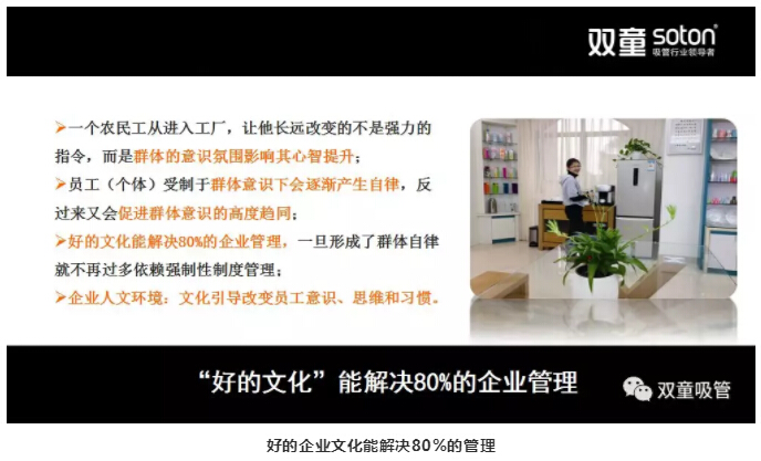 因此,好的企業(yè)文化能解決80%的管理,一旦形成了群體自律就不再過多依賴強制性制度管理,從而形成企業(yè)特有的文化價值觀!