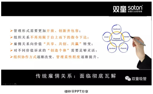 這些年來,“雙童”樓仲平一直十分重視團隊管理,敢于授權(quán),用科學(xué)理性的方式引導(dǎo)員工職業(yè)化轉(zhuǎn)變,推動企業(yè)規(guī)范化、制度化、流程化和標準化。