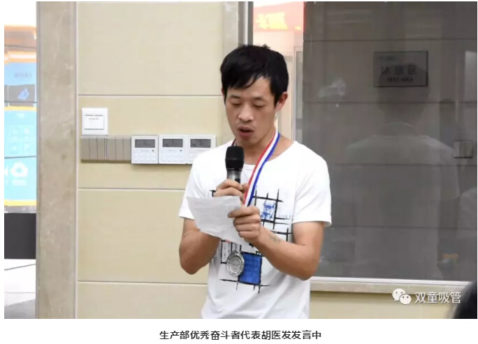 在表彰儀式后,來自銷售部及生產部的兩位優(yōu)秀奮斗者代表葛燁與胡醫(yī)發(fā)進行了發(fā)言,他們紛紛表示:很高興能夠遇見“雙童”,遇見“雙童”的改革,這一次所獲得的獎勵,不僅僅是榮譽上,更是公司對我們工作的認同與肯定,在接下去的工作中,也將再接再厲,努力做到更好,也希望下一次能夠再次走上這個舞臺。