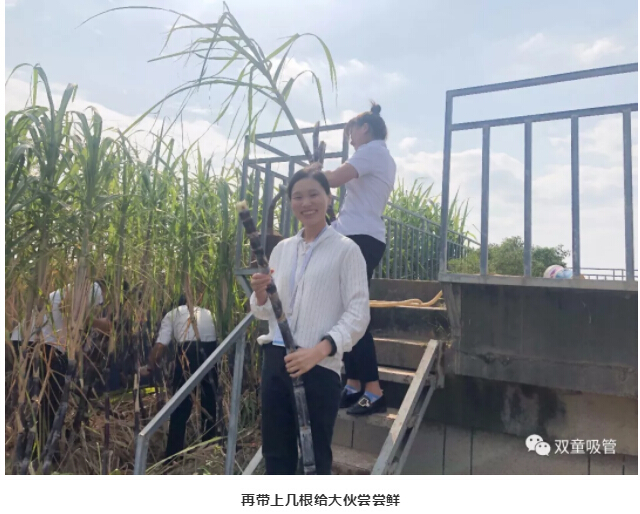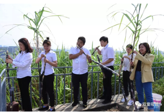 每逢甘蔗季,來“雙童”參觀的客人們也忍不住下到甘蔗地里親自收割甘蔗,品嘗“雙童”的果實!