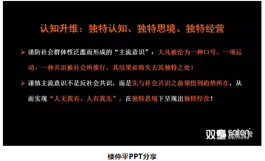 但是,我們一定要理解,謹(jǐn)慎主流意識(shí)并不是反社會(huì)共識(shí),而是先于社會(huì)共識(shí)之前領(lǐng)悟到趨勢(shì)所在,極早作出改變,從而實(shí)現(xiàn)“人無我有、人有我先”,在獨(dú)特思境下呈現(xiàn)出獨(dú)特經(jīng)營(yíng),創(chuàng)造出獨(dú)特的價(jià)值!
