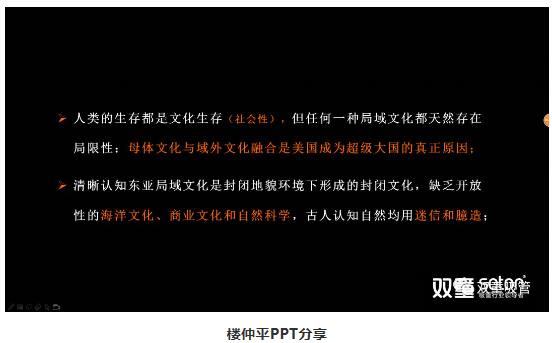 在引入主題前,樓仲平給在座聽眾們打了一個(gè)“預(yù)防針”,坦言這個(gè)版塊將會(huì)給大家?guī)順O大的思想沖擊和認(rèn)知上的震撼,甚至?xí)o大家?guī)聿贿m感,并引發(fā)抵觸。因?yàn)檫@個(gè)版塊將會(huì)引導(dǎo)大家認(rèn)知“自我批判”!