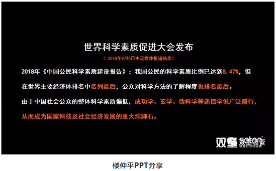接著,樓仲平引述了2018年《中國(guó)公民科學(xué)素質(zhì)建設(shè)報(bào)告》,讓大家了解到目前中國(guó)公眾對(duì)科學(xué)認(rèn)知所處的階段: