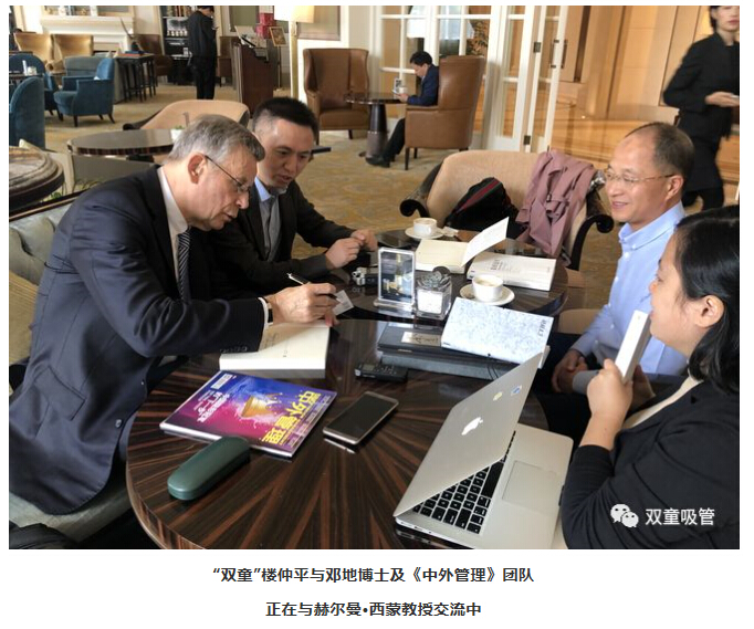 中國(guó)企業(yè)千千萬(wàn),說(shuō)到“隱形冠軍”也有不少,可為何此次《中外管理》雜志特別邀請(qǐng)了樓仲平一同前往采訪西蒙教授呢?原來(lái),早在2018年的首屆“中國(guó)造·隱形冠軍”評(píng)選活動(dòng)中,“雙童”就經(jīng)過(guò)陳春花教授等七位評(píng)委專家的評(píng)選,從24家優(yōu)秀企業(yè)中脫穎而出,被推選為首批“中國(guó)造·隱形冠軍”。除此之外,在西蒙教授最新所著的《隱形冠軍》一書中,“雙童”也作為隱形冠軍企業(yè)案例被收錄其中!所以,此次的采訪“隱形冠軍之父”西蒙教授之行,“雙童”樓仲平作為中國(guó)隱形冠軍企業(yè)代表參與其中,也是再合適不過(guò)了!