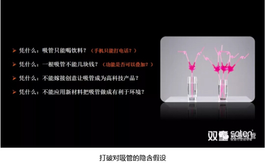 我們再回到吸管的案例上,雙童”在二十多年前就打破了隱含假設(shè),不斷進(jìn)行內(nèi)部追問和反思:吸管為什么一定是用來喝飲料?吸管為什么一定只能賣幾厘錢?吸管為什么一定要塑料材質(zhì)?