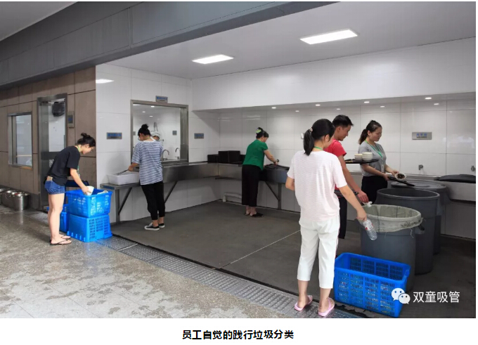 剛剛?cè)肼氁粋€(gè)月的員工告訴記者,“五個(gè)碗”是雙童員工的餐具標(biāo)配。自從來了公司,她也慢慢養(yǎng)成了拿五個(gè)碗的習(xí)慣。在這里,自覺進(jìn)行垃圾分類已成為每一名員工的日常習(xí)慣。