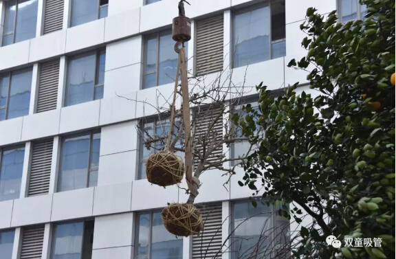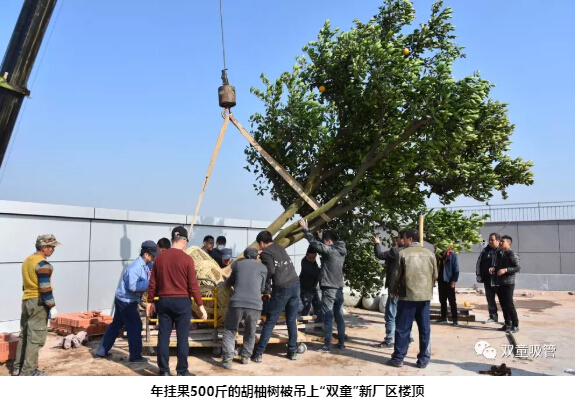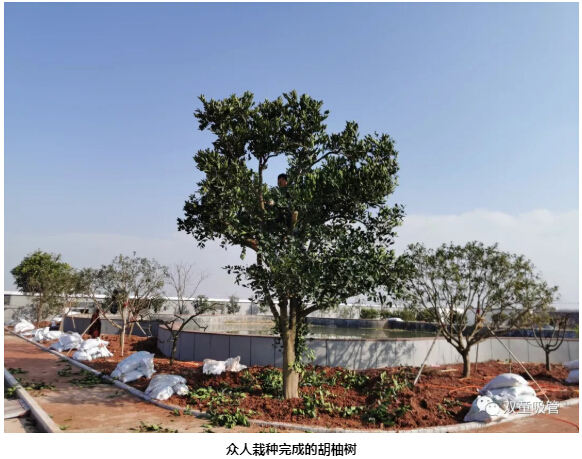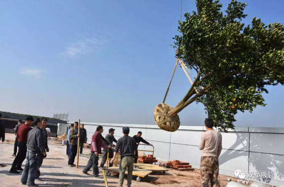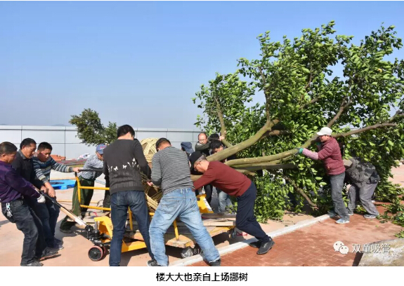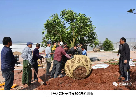 不過,在栽種最后兩棵胡柚時,可是召集了二三十位“大力士”在樓頂上接應(yīng),一同栽種。光是栽種這可胡柚樹就用了大半天時間。在這個過程中,連樓大大也親自上陣出力了!