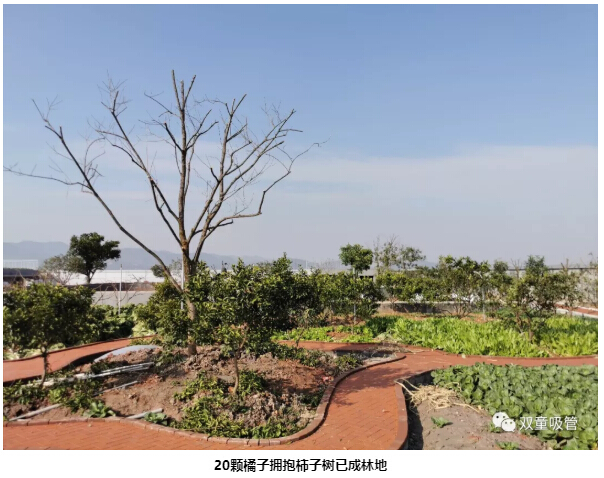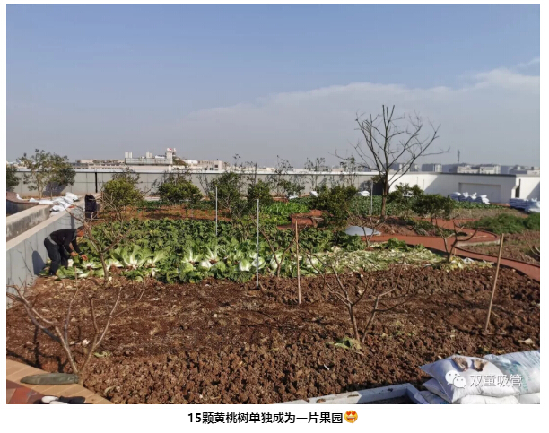 另外,在“雙童”新廠房樓頂魚塘邊,楊梅樹與黃桃樹的倒影初現(xiàn)。想象一下:等到果實豐收之時,一邊觀賞農(nóng)園風(fēng)光,一邊還能靜靜地釣一釣魚,嘗嘗鮮美可口的果實,這簡直是生活的詩和遠(yuǎn)方。