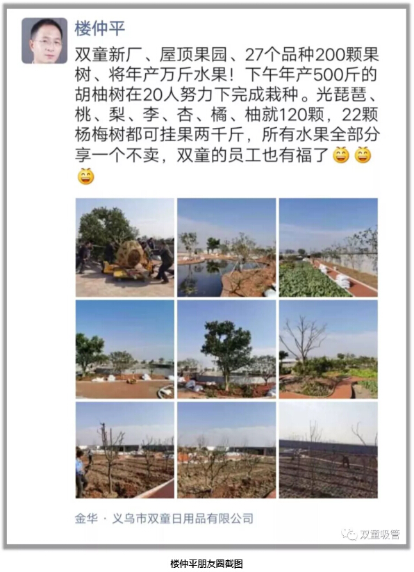 看到這,吸管妞萬萬沒想到,連板栗樹也被樓大大從蘭溪山區(qū)拖到“雙童”新廠房樓頂?。≒S:以后“雙童”可以自產(chǎn)美味的糖炒栗子啦)