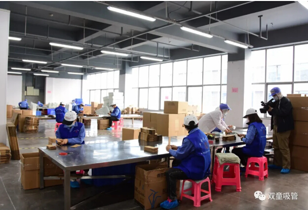 從2月25日開始,上崗的工會(huì)機(jī)關(guān)干部、婦聯(lián)志愿者相繼來到“雙童”,經(jīng)過測(cè)量體溫、消毒登記、查看健康碼、更衣?lián)Q帽等一系列防疫流程后,進(jìn)入了包裝車間。