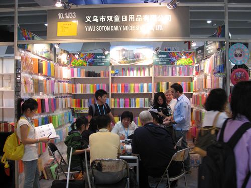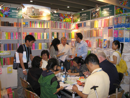 上圖為2008年廣交會中外客商在公司展位上洽談訂單合作事宜