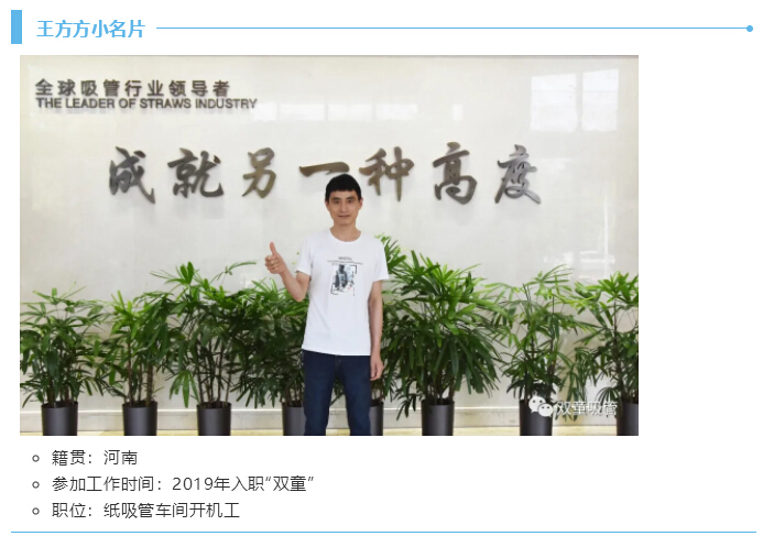 紙吸管車間開機工王方方就是其中一員,他在“雙童”工作的短短一年內,連續(xù)四次在小組競賽中斬獲第一,并獲得了“2019年度十佳員工”稱號!為何他能屢次獲得榮譽?他身上又有哪些閃光點?一起來看看吧!
