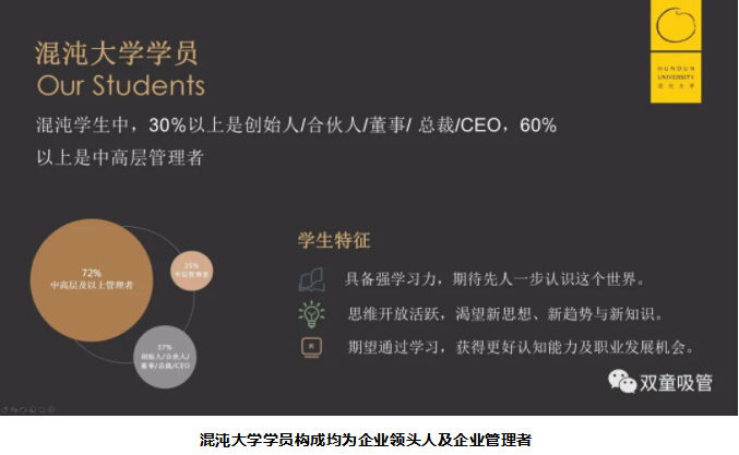 在這里,你可以選擇諾貝爾獎(jiǎng)獲得者、全球頂尖學(xué)府教授、世界一流學(xué)者等大咖成為你的實(shí)戰(zhàn)領(lǐng)袖,也可以同張泉靈、蔣昌建、徐小平等優(yōu)秀學(xué)員成為校友。而你的同學(xué),則會(huì)是一大批優(yōu)秀的企業(yè)領(lǐng)頭人及中高層管理者。