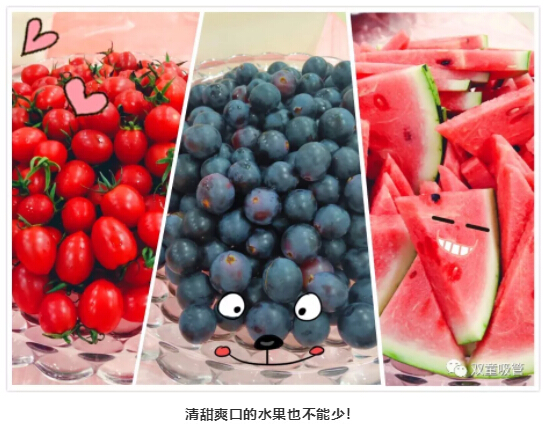 接著一起來看看“雙童”生日會的美味:涼拌牛肉、水煮魚、小雞燉蘑菇、義烏餛飩……有好多以前沒出現(xiàn)過的新鮮菜式呢!除此之外,還有清新爽口的水果來助陣,美味享不停??吹面た谒绷鳎?/span>