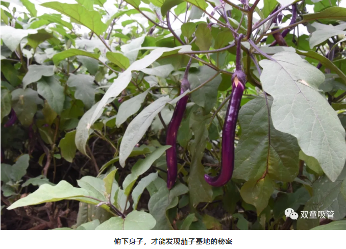 除了番茄基地之外,另外一邊的茄子基地,那收獲和番茄不相上下,一走到茄子基地旁,映入眼簾的是郁郁蔥蔥一片,綠油油的葉片下懸著一根根飽滿的茄子。