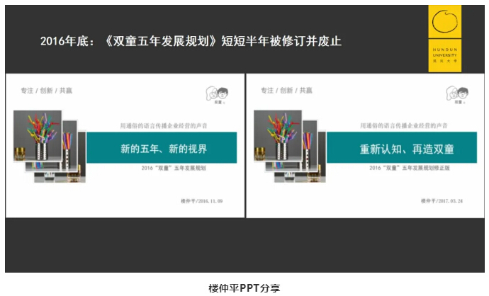 但2015年以后,在持續(xù)增長(zhǎng)受限的現(xiàn)實(shí)情況下,我們逐漸意識(shí)到原來(lái)的“經(jīng)驗(yàn)”已經(jīng)逐漸失效,原本所謂的“成功模式”已經(jīng)不適用于“雙童”未來(lái)發(fā)展訴求。面對(duì)時(shí)代的不確定性,雙童第四個(gè)《五年發(fā)展規(guī)劃》短短半年被修訂并廢止,并明確后續(xù)不再推行《五年發(fā)展規(guī)劃》。