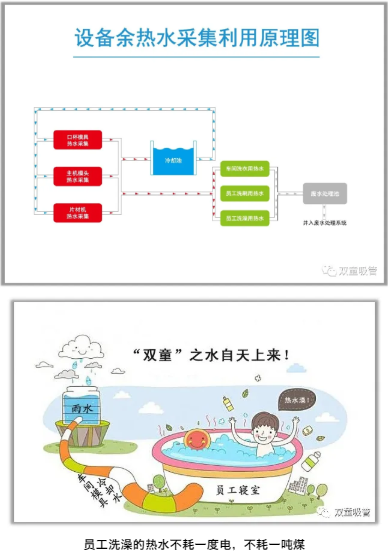 最神奇的是,“雙童”員工洗澡的熱水不耗一度電,不耗一噸煤,全部是收集好的雨水經(jīng)車間模具冷卻后形成的余熱水哦!