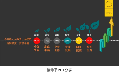 課程一開場,樓仲平就分享了自己的成長歷程。在他的成長歷程中,有三個(gè)重要的時(shí)間節(jié)點(diǎn):