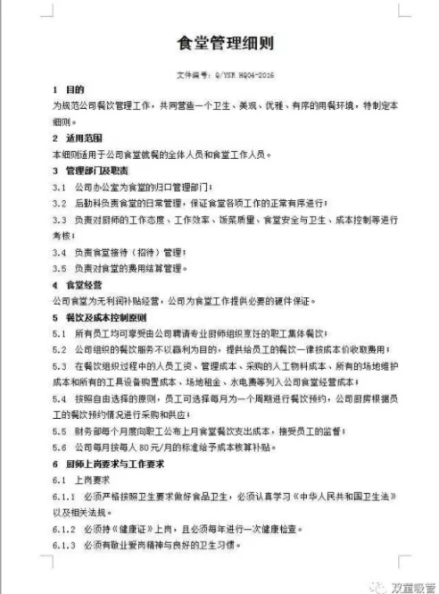 “雙童”食堂管理細則,涉及到餐飲管理的各個方面