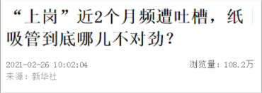 就在今天,新華社發(fā)表一篇《“上崗”近2個月頻遭吐槽,紙吸管到底哪兒不對勁?》文章,剛一發(fā)出,就獲得了100+萬的瀏覽量!可以看出,社會大眾對奶茶與紙吸管的關(guān)注已經(jīng)到了空前程度。