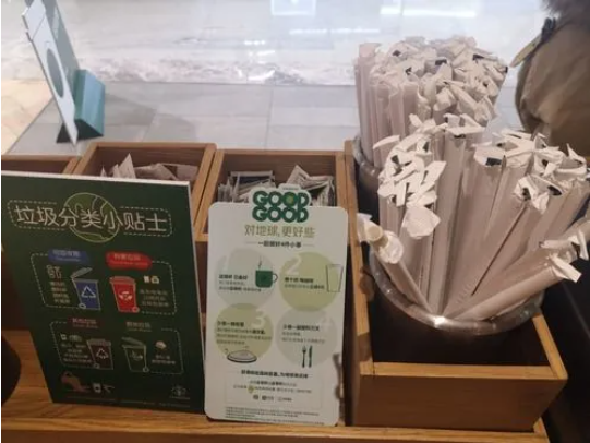 位于南京市的一家星巴克門店為消費(fèi)者提供紙質(zhì)吸管