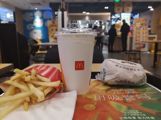 位于南京市建鄴區(qū)的一家麥當(dāng)勞門店停用塑料吸管,消費(fèi)者可通過新型杯蓋直接飲用冷飲