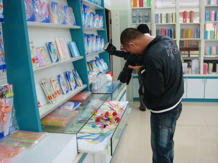 上圖:欄目組采訪拍攝公司藝術(shù)吸管系列