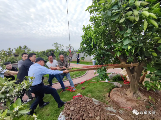 年掛果300斤的胡柚樹被吊上“雙童”二期廠區(qū)樓頂