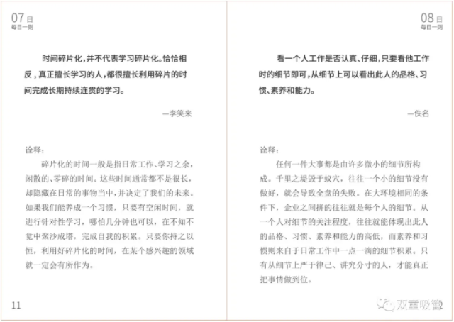 好啦!相信大家看完2021版《每日一則》的序言,一定還覺(jué)得意猶未盡,吸管妞接下來(lái)會(huì)不定期和粉絲們分享2021版《每日一則》內(nèi)容!大家不要忘了到留言處發(fā)表對(duì)于《每日一則》的感想。留言的粉絲添加吸管妞的微信即可9.9包郵購(gòu)入一本2021版《每日一則》!大家趕快行動(dòng)吧!