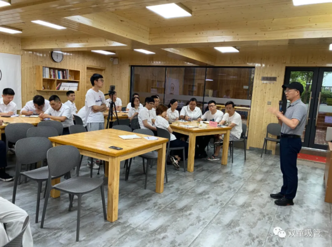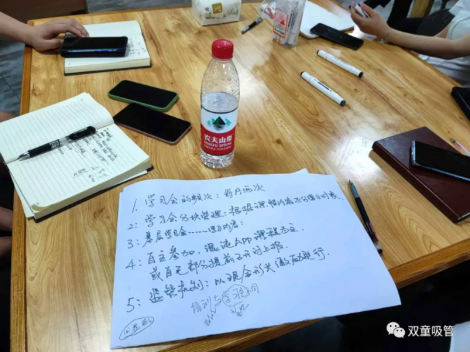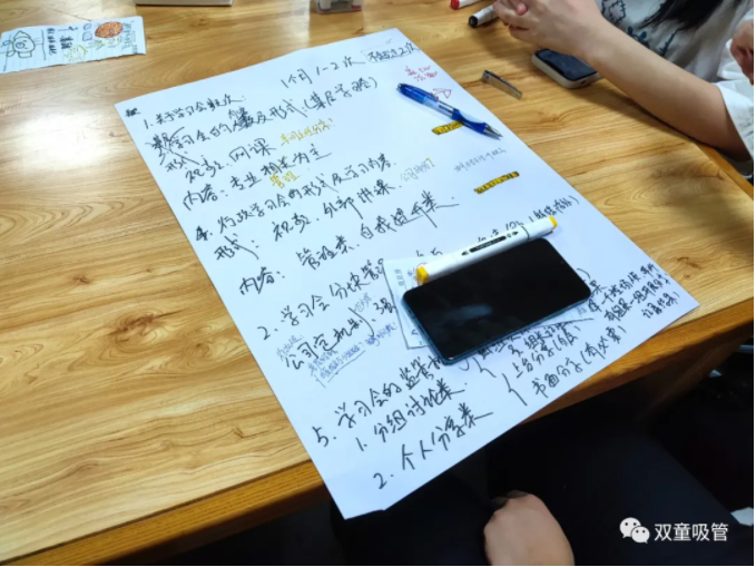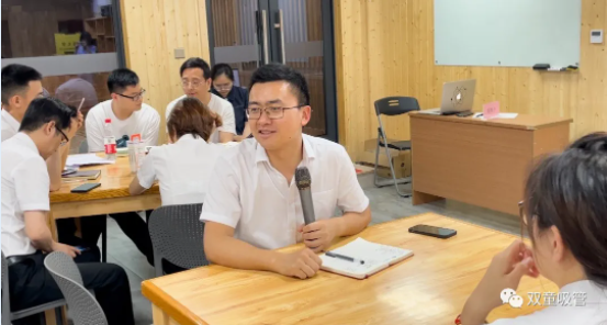 樓仲平的分享,引發(fā)了大家的共鳴和一致認(rèn)可。因此,雙童的小伙伴們針對(duì)五個(gè)提問,分組對(duì)學(xué)習(xí)會(huì)機(jī)制進(jìn)行了分析討論(自營(yíng)體長(zhǎng)組,生產(chǎn)中高層組,品管研發(fā)組,行政組,銷售人員組)。