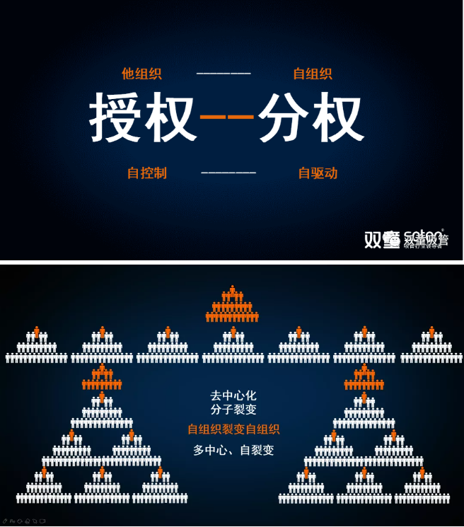 樓老師通過剖析人性、解讀經(jīng)理人老化現(xiàn)象、引入“自組織”概念、介紹“雙童”組織變革模式等篇章,層層剖解組織變革的重要性和必然性,讓同學(xué)們深度領(lǐng)會“人性”驅(qū)使下,組織應(yīng)通過改變賦能方式和企業(yè)的價值創(chuàng)造方式,把管理者轉(zhuǎn)變?yōu)閯?chuàng)業(yè)者,實(shí)現(xiàn)企業(yè)從“授權(quán)”到“分權(quán)”,從完成授權(quán)指令任務(wù)的“自控制”到分權(quán)賦能的“自驅(qū)動”轉(zhuǎn)變,推動組織效率得以在巨變環(huán)境下獲得最大的釋放。