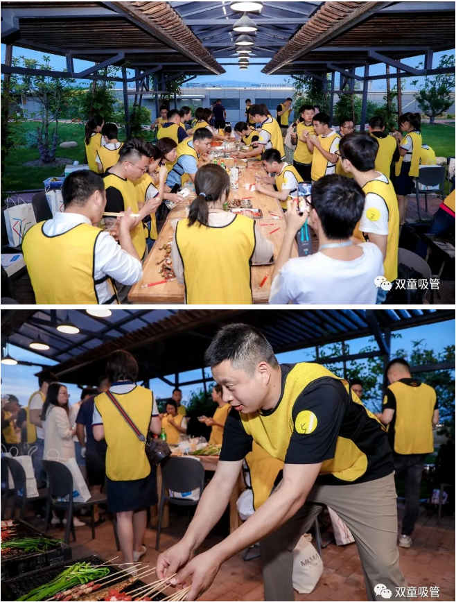 夜幕降臨,課程收尾后,大家來到“雙童”空中生態(tài)園的燒烤平臺,開始了期待已久的烤全羊PARTY。伴隨著生態(tài)園里陣陣花香,大家邊吃邊聊,相處甚是融洽!