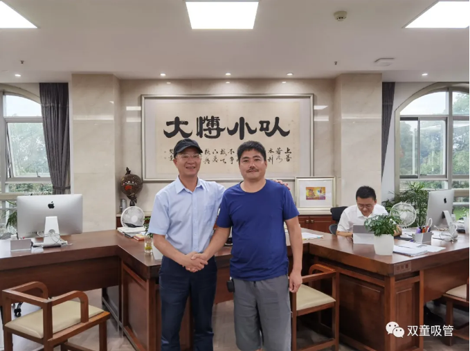 昨天,“雙童”來(lái)了一位“貴客”——?jiǎng)⒊蓤?jiān)先生與樓仲平進(jìn)行了深入的交流。這位“貴客”可不一般,他是“雙童”樓仲平選擇制造吸管這條路的助推者哦。