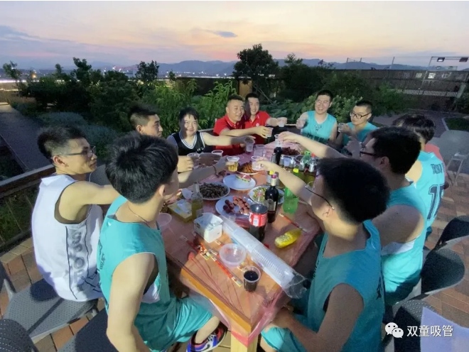 籃球賽結(jié)束后,中國(guó)小商品城日用百貨商會(huì)的隊(duì)員以及“雙童”的隊(duì)員在“雙童”七樓空中生態(tài)園共同參加了小龍蝦燒烤Party,啤酒、美食的助攻,進(jìn)一步加深了兩隊(duì)的感情!