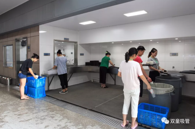 在“雙童”600余人就餐的員工餐廳里,濕垃圾也是“雙童”垃圾分類經的一大重點!“五個碗”是雙童員工的餐具標配,在每張餐桌上都擺放著用餐規(guī)范的標語提示牌。