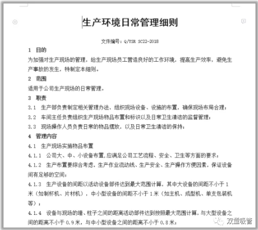 除了優(yōu)質(zhì)生產(chǎn)環(huán)境之外,我們也有一系列的制度文件支撐!為了加強(qiáng)環(huán)境的衛(wèi)生管理,我們建立了完善的衛(wèi)生保障體系支撐,明確生產(chǎn)過(guò)程中的衛(wèi)生保潔和操作規(guī)程的要求,確保生產(chǎn)的產(chǎn)品衛(wèi)生和質(zhì)量指標(biāo)符合國(guó)家相關(guān)規(guī)定要求!