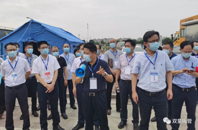 本次檢測演練總指揮部就設(shè)立在雙童新廠區(qū)六樓的大會堂內(nèi),金華市委常委、義烏市委書記林毅,金華市委常委祝倫根,金華市副市長、義烏市市長王健及義烏市市委副書記陳小忠、義烏市市委常委賈以鳴、義烏市副市長江棟、義烏市副市長駱小俊等領(lǐng)導(dǎo)親臨一線現(xiàn)場指揮演練。
