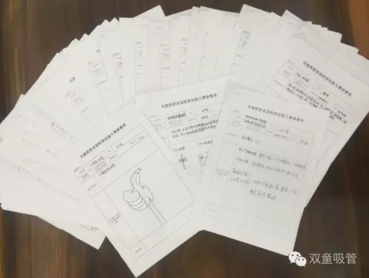 “雙童”的愛心吸管“僅這一個(gè)小小的水流止回閥,我們就擁有4項(xiàng)自主知識(shí)產(chǎn)權(quán),有效解決了液體回流問題,還避免交叉感染?!睒侵倨礁嬖V記者,因?yàn)槲苌a(chǎn)是很偏很窄的行業(yè),要想產(chǎn)品有創(chuàng)新、有市場(chǎng),“雙童”只能靠自己研發(fā),除了產(chǎn)品的外觀、功能外,就連生產(chǎn)設(shè)備也要自己研制,他的很多創(chuàng)新都是“困而知之”的產(chǎn)物。為了鼓勵(lì)員工參與創(chuàng)新,樓仲平每年都會(huì)舉辦產(chǎn)品創(chuàng)新大賽,讓員工們的創(chuàng)新潛力得到最大程度的激發(fā)?,F(xiàn)在熱銷的不少新款吸管產(chǎn)品,就來自創(chuàng)新大賽的獲獎(jiǎng)作品。2015年,“雙童”的新產(chǎn)品占比超過56%。 員工設(shè)計(jì)的93份吸管產(chǎn)品圖紙 追求創(chuàng)新,讓一根毫不起眼的吸管從低小散弱變成了高大上,而企業(yè)也在工業(yè)用地、廠房、設(shè)備保持不變的情況下,實(shí)現(xiàn)了資源產(chǎn)出的最大化。10年里,“雙童”產(chǎn)值始終保持著每年兩位數(shù)增長(zhǎng),產(chǎn)值增長(zhǎng)了6倍,人均產(chǎn)出增長(zhǎng)了8倍。 “雙童”全封閉無塵紙吸管車間
