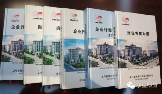 精細(xì)化管理也滲透在雙童的各個(gè)環(huán)節(jié)。樓仲平格外注重企業(yè)文化對(duì)員工素養(yǎng)的提升。在“雙童”,每周雷打不動(dòng)都有兩期全員學(xué)習(xí)大會(huì);各部門還有自己的小課,即使是保潔阿姨、門衛(wèi),每周都要求學(xué)滿10小時(shí)。此外,雙童還擁有完整的制度流程,已經(jīng)積累形成了2000多頁標(biāo)準(zhǔn)化制度文件,其中管理衛(wèi)生的文件就涉及260多頁。 已經(jīng)成冊(cè)的各種管理制度和手冊(cè) 正是這種嚴(yán)謹(jǐn)、認(rèn)真的“工匠”態(tài)度,“雙童”先后承擔(dān)了《聚乳酸冷飲吸管》中國(guó)輕工業(yè)標(biāo)準(zhǔn)、《聚丙烯飲用吸管》中國(guó)國(guó)家標(biāo)準(zhǔn)和《聚丙烯飲用吸管規(guī)范》ISO國(guó)際標(biāo)準(zhǔn)的起草編制,把規(guī)則制定和國(guó)際話語權(quán)牢牢掌握在自己手中,成為了浙江省唯一一家單一企業(yè)承擔(dān)“行業(yè)標(biāo)準(zhǔn)、國(guó)家標(biāo)準(zhǔn)和ISO國(guó)際標(biāo)準(zhǔn)”的中小企業(yè),也成為第一個(gè)使“義烏標(biāo)準(zhǔn)”走上國(guó)際舞臺(tái)的企業(yè)。