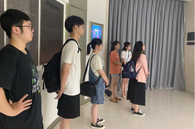 浙江工業(yè)大學(xué)師生團(tuán)正在觀看博物館視頻