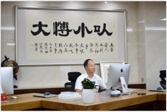樓仲平的辦公室里掛著一幅書法作品,“以小博大”四個(gè)大字的下面,還添了幾列小字:上善若水,水善利萬物而不爭(zhēng)。夫唯不爭(zhēng),故天下莫能與之爭(zhēng)。