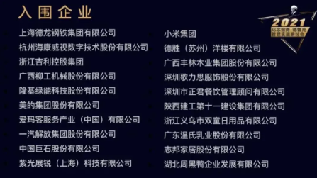 入圍企業(yè)名單