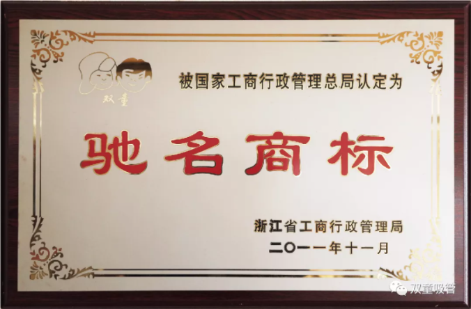 “雙童”商標榮獲國家工商總局認定的“中國馳名商標”稱號,成為了義烏歷史上第八件中國馳名商標