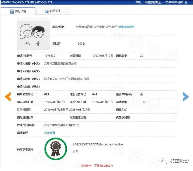客觀上講,我們的“雙童”商標在使用和推廣過程中是得人于先機的,畢竟它已經(jīng)被行業(yè)內所有企業(yè)使用了十多年,后來我們在注冊臺灣“雙童”商標時考證了該商標的來歷,弄清了它的來龍去脈。該商標先是在70年代后期被臺灣企業(yè)所有,該包裝的產(chǎn)品出口到香港等地,由于香港與廣東有著密切的產(chǎn)業(yè)聯(lián)系,到八十年代之后,廣東的吸管生產(chǎn)企業(yè)也相繼使用了該商標圖案作為吸管產(chǎn)品的包裝標記。但在這漫長的過程中竟然沒有一家企業(yè)想著去把她作為商標注冊!由于有了這么一段歷史的淵源,使得我們在后來的品牌推廣上事半功倍,一下就在吸管行業(yè)內奠定了品牌地位,使我們生產(chǎn)的產(chǎn)品和品牌被廣泛認同。