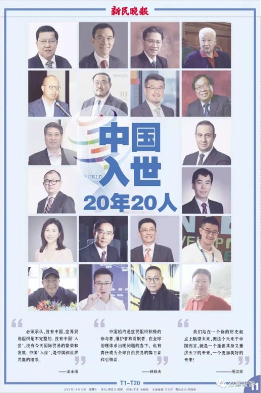 樓仲平入選《新民晚報(bào)》中國(guó)入世20年20人專題