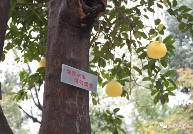 柚子樹上溫馨的標(biāo)語提示,