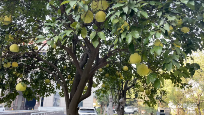 “雙童”廠區(qū)的柚子樹掛果啦