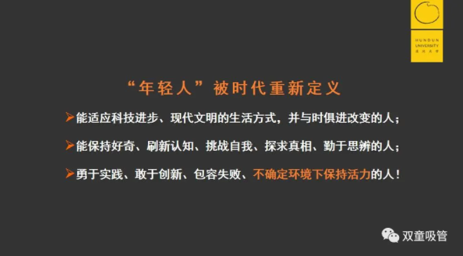 他認(rèn)為,“年輕人”是這個時(shí)代的主人。他們更能接受新的變化,更能理解新鮮事物,更能獲得新的機(jī)遇。50后、60后、70后們只能更努力地向年輕人靠攏,向年輕人學(xué)習(xí),才不會被這個時(shí)代所拋棄,才能在不確定的時(shí)代下保持活力!
