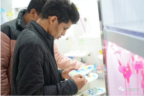 其中,在參觀創(chuàng)新吸管產(chǎn)品體驗(yàn)區(qū)時(shí),動(dòng)物造型的卡通吸管、內(nèi)嵌風(fēng)輪會(huì)不停旋轉(zhuǎn)的風(fēng)車吸管、眼鏡吸管、小鳥吸管、party吸管……琳瑯滿目、形態(tài)各異的吸管產(chǎn)品讓中外師生們的驚嘆聲此起彼伏,紛紛表示如果不是親所見,很難想象一根吸管竟有這樣的創(chuàng)造力,“雙童”簡(jiǎn)直是中國(guó)版“Google” !