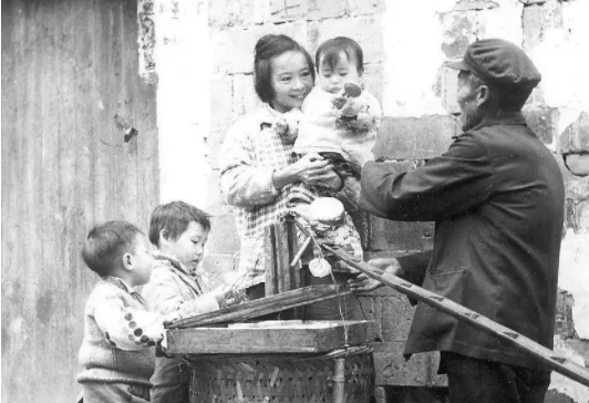 義烏貨郎收雞毛中 “雞毛換糖”換來的雞毛由于數(shù)量較多要等到火車托運回來后交給生產隊記工分(以前農村考核社員的一種計分)而充當副業(yè)費。父親回來后我會整天跟著他到農村市口去換山貨,每次換山貨后等待的就是爸爸肯定會買一個只有這個時候才能吃到的麻餅。三兄弟中我最小,我一直以來感覺爸爸也最疼我,這是我記憶中最最幸福的事情。